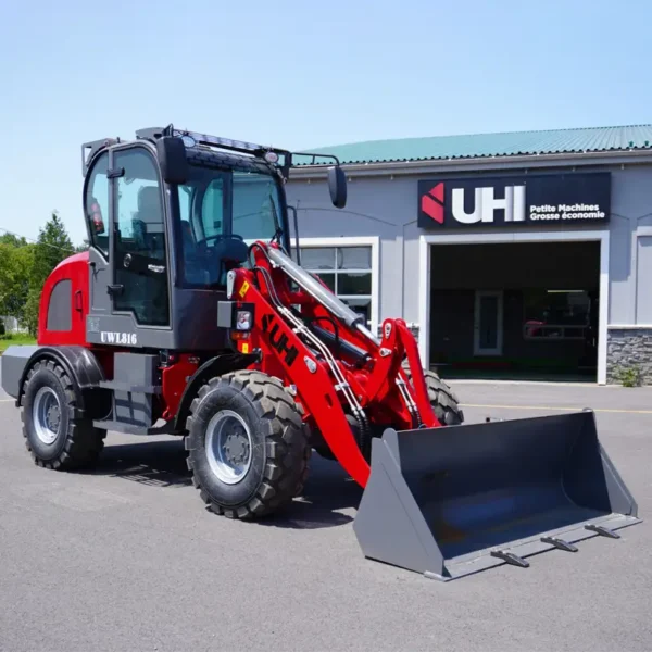 The UWL816’s compact wheel loader boasts a tight turning radius, thanks to its articulated steering. This provides strong performance and high maneuverability, making it easy to navigate around obstacles and work efficiently in confined job sites. Whether you’re operating in a crowded construction area or a tight landscaping space, the UWL816’s articulation joint ensures you can handle tasks with precision and ease